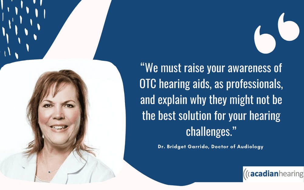 The team and I at Acadian Hearing want to encourage you to use the information you’ve gathered to motivate you to seek the professional hearing care available from a doctor of audiology rather than pursuing self-treatment with an OTC hearing aid.